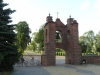 Mijamy kościół w Dąbrówce Wsi. To już 10 kilometrów od placu Konstytucji. W Dąbrówce Podleśnej zaczynamy się obniżać do doliny Radomierzy. Rzeka na mapach widnieje jako Radomka, ale trzymajmy się tradycyjnej nazwy. Sporo tutaj starych drewnianych chałup, również budowanych na zrąb. W Kolonii Piaski skrzyżowanie - w prawo i lewo asfalt, my jedziemy prosto szeroką drogą gruntową. Pierwsze dwieście metrów jest bardzo piaszczyste, dalej jedzie się lepiej. Przekraczamy mostek na pierwszym starorzeczu Radomierzy. Rzeka płynie tu kilkoma odnogami. Po lewej stronie wykopany - jak pod linijkę - prostokątny staw, z okrągłą - jak od cyrkla - wysepką. Po trzystu metrach drugi most, za którym od razu skręcamy w lewo, w drogę biegnącą po wale przeciwpowodziowym. Niebawem robi się ona trawiasta i nierówna. Idzie zrazu wzdłuż rzeki, by w końcu odbić łukiem w prawo. Po lewej stronie mijamy samotne uschłe drzewo i zaraz przecinamy głęboki rów. Tuż za nim skręcamy w lewo. Wąską trawiastą drogą wjeżdżamy w wysokie zarośla - groźnie wyglądające pokrzywy i tataraki. Przekraczamy niewielki dołek, który po deszczu może być podmokły. Ale skoro przechodzi tędy piesza pielgrzymka do Błotnicy - i my damy radę. Po kilkudziesięciu metrach nasza droga się kończy. Nie zniechęcając się wyjeżdżamy na łąkę. Zaraz zobaczymy zabudowania Jankowic - już po drugiej stronie głównej odnogi Radomierzy. Prowadzi do nich metalowy mostek. Jeśli przekraczając go odwrócimy się - ponad lasami dostrzeżemy znajomy komin. Za mostkiem skręcamy w lewo i podążamy wzdłuż rzeki. Po chwili przejeżdżamy ponad kolejną odnogą rzeki. Tu kilkadziesiąt metrów drogi mocno piaszczyste. Dalej zaczyna się szuter. Docieramy do rozjazdu. Na słupie po lewej stronie bocianie gniazdo - zamieszkałe. Po prawej prefabrykowany betonowy płot - ten wynalazek jest w architekturze polskiej wsi tym, czym disco polo w muzyce... Ponad płotem możemy dostrzec w dali ceglaną kaplicę cmentarną. Jedziemy w lewo, do asfaltowej drogi, którą też w lewo. Po 250 metrach od rozjazdu droga w lewo prowadzi do kościoła. Wzdłuż niej stoją stacje drogi krzyżowej. Kościół w Jankowicach otoczony jest murem z czterema kaplicami w narożach. Najciekawsza jest jednak ceglana brama wejściowa, będąca jednocześnie dzwonnicą.